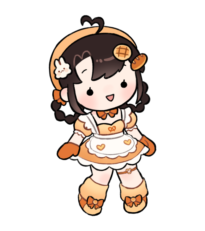 A turtle made of mochi-filled melonpan. He always seems a little overworked, but never takes vacation days. Mochi handles a lot of behind-the-scenes work for the bakery, from inventory management to cooking up motion graphics.